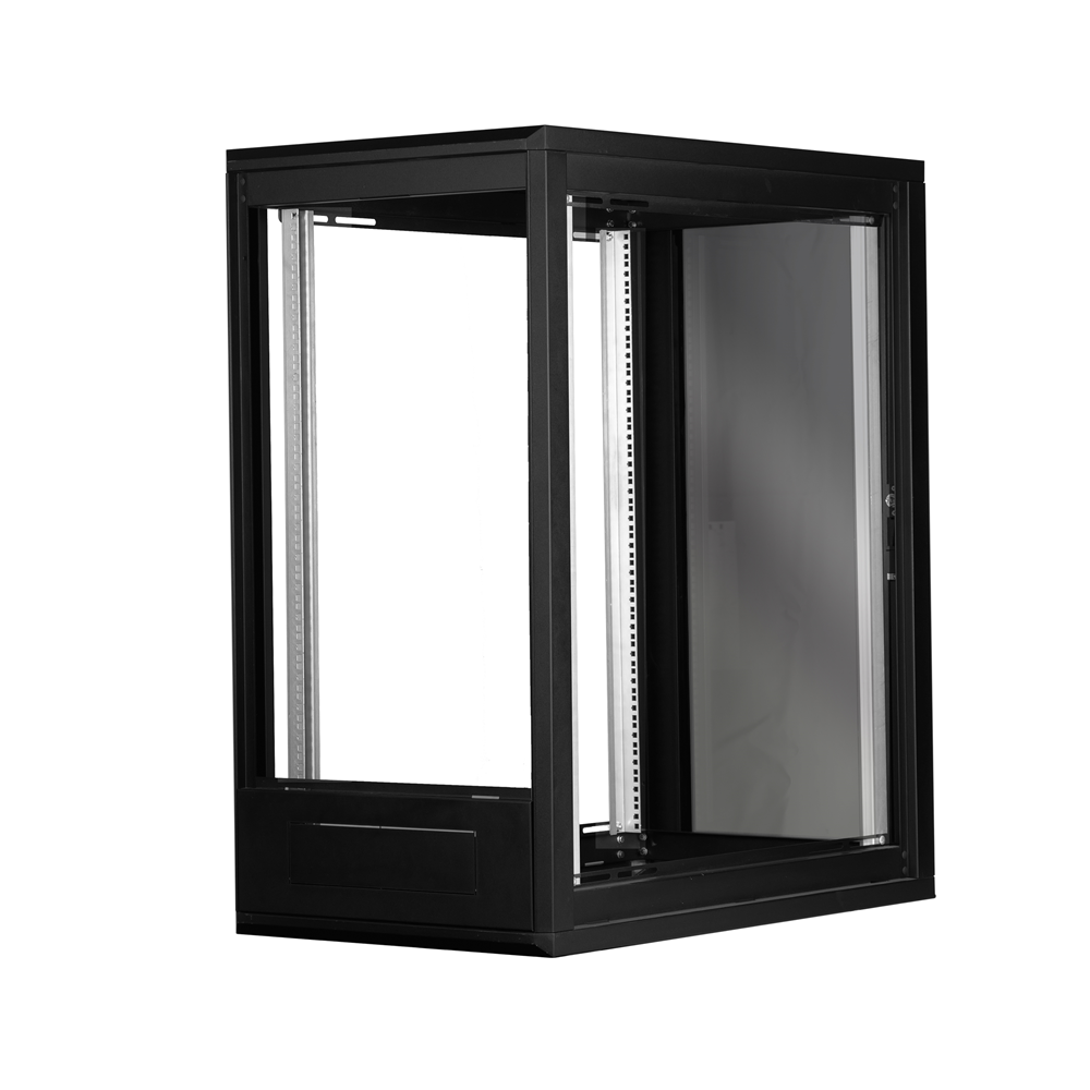 19" 20U Dikili Tip Efficient modüler rack kabin serisi kolay montajı, estetik görünümü ön kısımda bulunan 4mm temperli camı, açılabilir ve kitlenebilir yan ve arka kapaklar, alt ve üstten kablo girişleri ve fan bağlamaya uygun üst tavan sacı ile size kullanım kolaylığı sağlıyor. Dikili Tip rack kabinetler 400kg taşıma kapasitesine, 4 adet ayarlanabilir cihaz dikmesi ile birlikte tamamı çelik konstrüksiyon yapıya ve ergonomik tasarıma sahiptir. 800-300mm derinliğindeki raf sistemleri ile uyumludur.Tavan kısmına opsiyonel olarak 2'li,'4'lü fan veya dikmelere ara modül fan bağlanabilir. Pingo ve teker takılabilir.