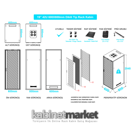 ÖNEMLİ: Rack kabininiz için aşağıda uyumlu aksesuarların yer aldığı "Sarf Malzemeler" bölümüne göz atınız.
