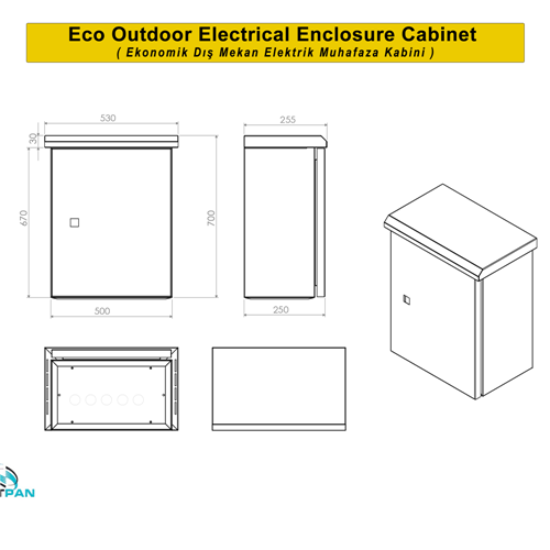 500x700x250mm Harici Duvar Tipi Ekonomik Seri Metal Elektrik Panosu