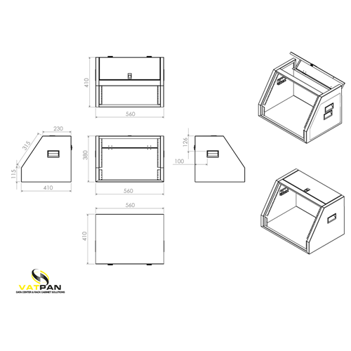 VATPAN C-1557 uyumlu bu ürün, dayanıklı 1311 Kalite galvaniz çelikten üretilmiş olup, üst kısmı menteşeli şekilde açılarak cihaz montaj ve bakım işlemlerini kolaylaştırır.