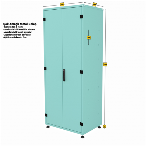 Biraz fazladan depolamanın gerekli olduğu herhangi bir odada Dikili Tip Çok Amaçlı Dolap RAL 6027 ile işlevsel, şık bir ifade yaratın.