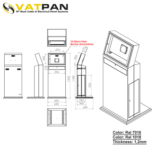 Dikili Tip Endüstriyel Bilgisayar Kabini RAL 1018 V.1